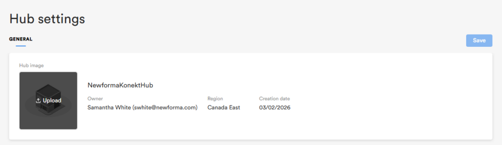 You can add or change the logo associated with your hub via this page. This image will appear after the login page in the hub selection page and in the corner of the printed reports. We recommend placing a logo of your company here.